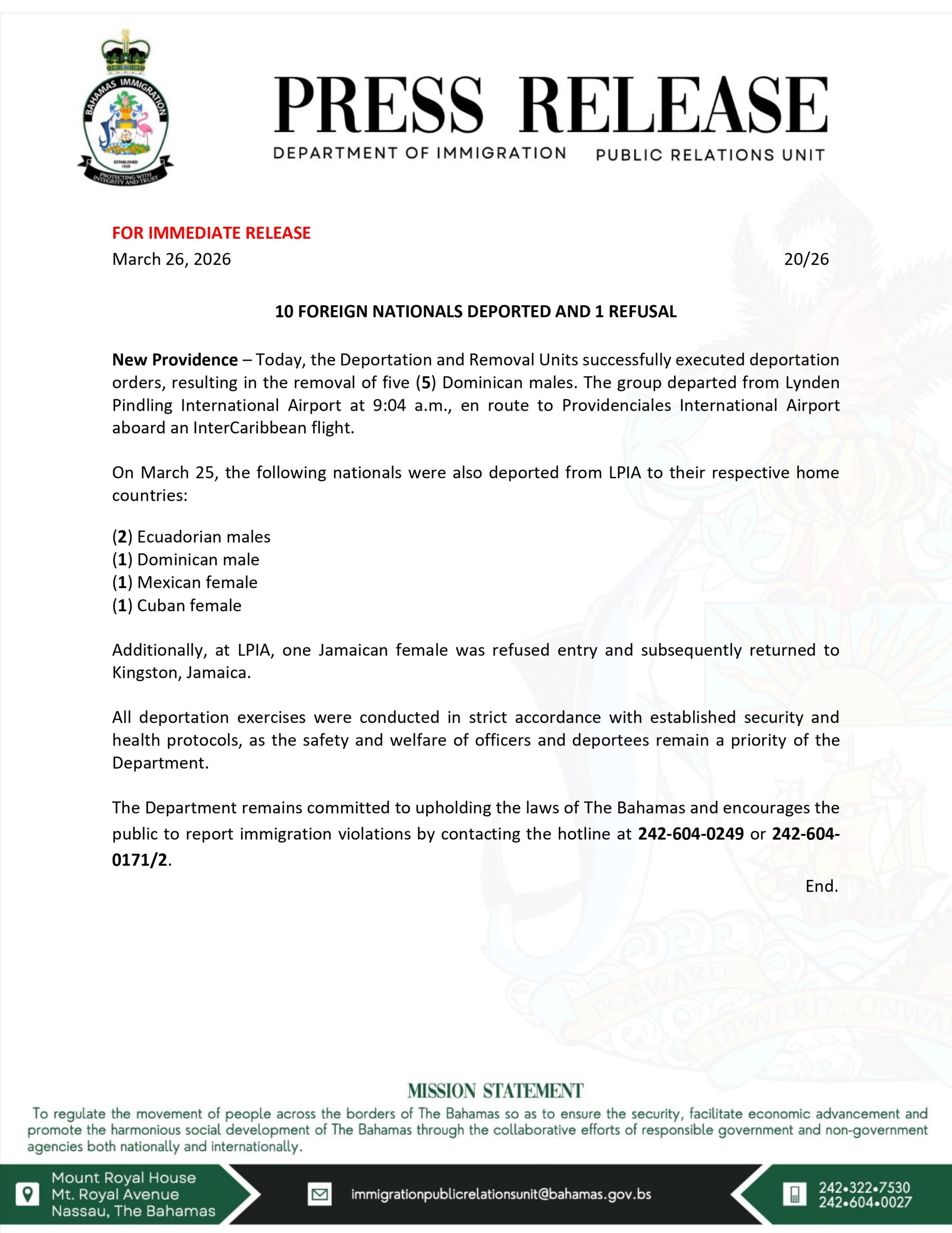 Immigration Officer I Lazell Taylor at Lynden Pindling International Airport was selected as the […]