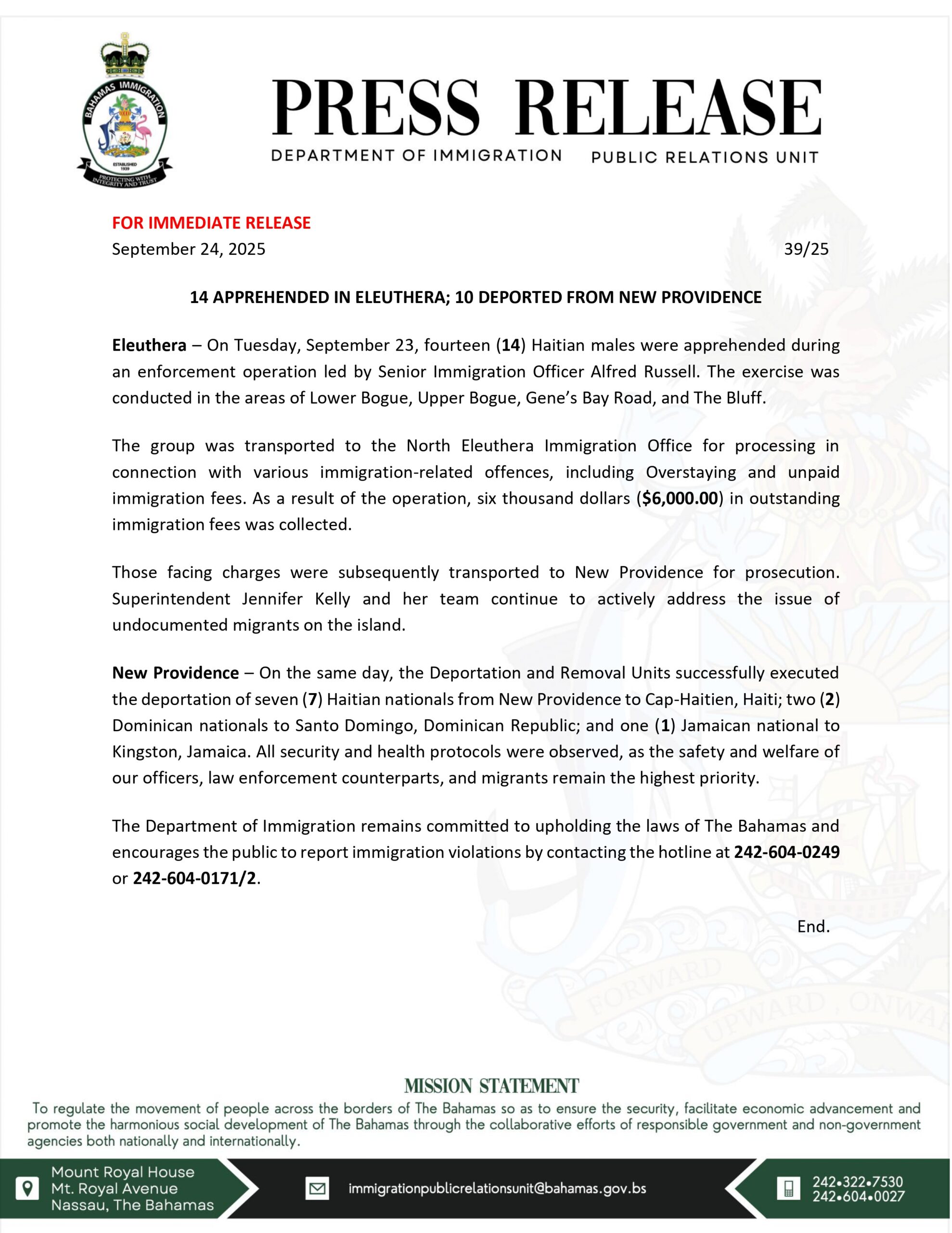 14 Apprehended in Eleuthera; 10 Deported from New Providence