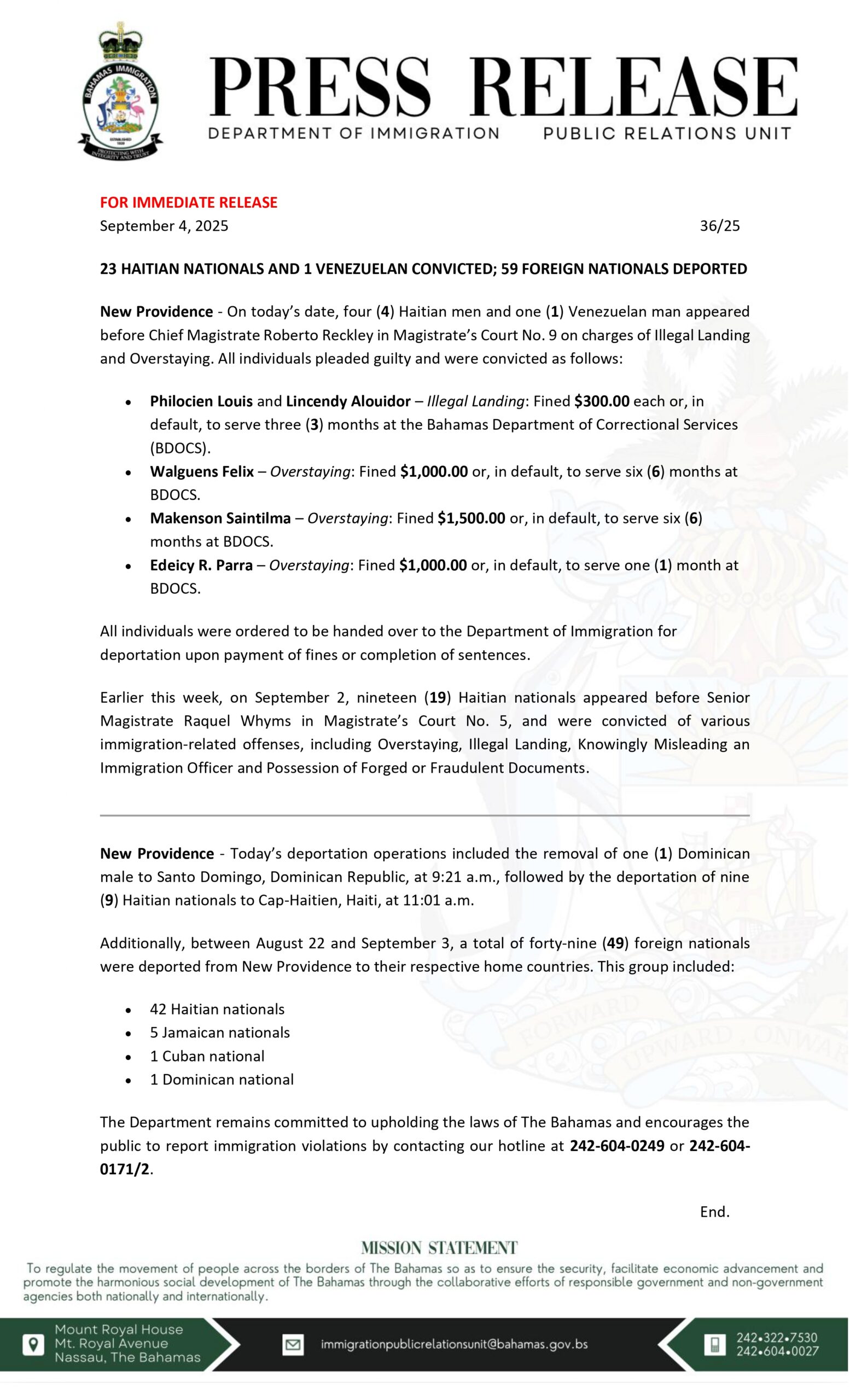 23 Haitian Nationals and 1 Venezuelan Convicted; 59 Foreign Nationals Deported