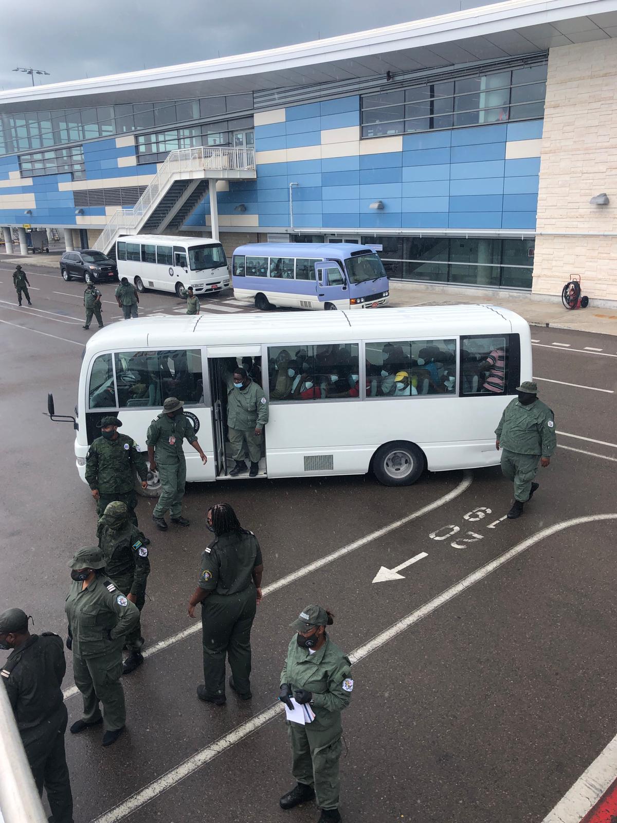 At 1:06 p.m. on Friday 12th June, 2020 the Immigration Department repatriated seventy-five (75) convicted Haitian nationals (67 Adult Males & 8 Adult Females) to their homeland from New Providence via Bahamasair Flight UP901 with direct service into Port au Prince, Haiti. Mr. Peter Joseph, Superintendent of Immigration and Officer in Charge of the Detention Centre, accompanied the repatriation Security Team of Immigration and Defence Force Officers on the flight.