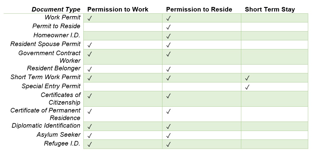 The Immigration Department is responsible for the processing, adjudication and issuance of permits to eligible non-Bahamian nationals for the purpose of working/ residing in The Commonwealth of The Bahamas. The following table gives a breakdown of the various work, residence and short term stay permits that the Department issues;