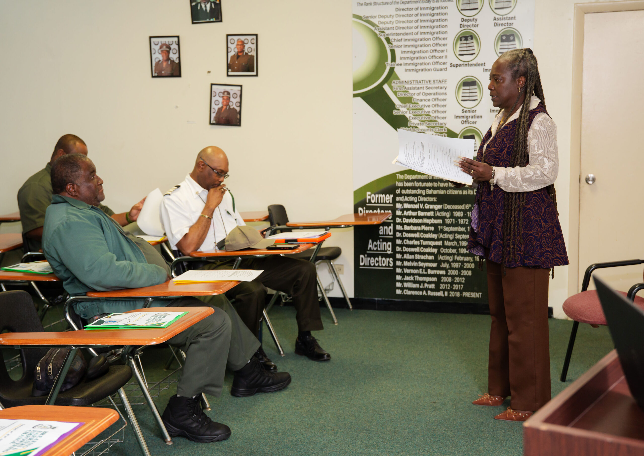 April 2-3, the Department hosted the second session of its Supervisory Workshop for Grade I and Senior Immigration Officers. The training was held at Mount Royal House in New Providence and focused on strengthening leadership capabilities, enhancing supervisory skills, and fostering professional development within the Immigration Department.