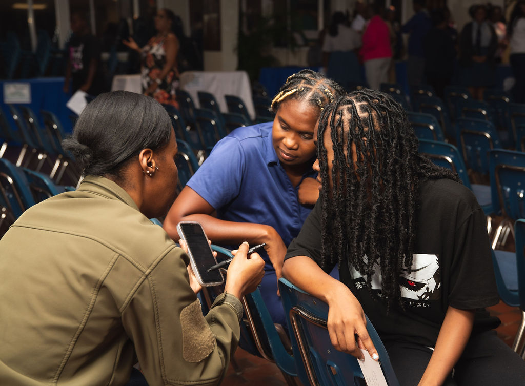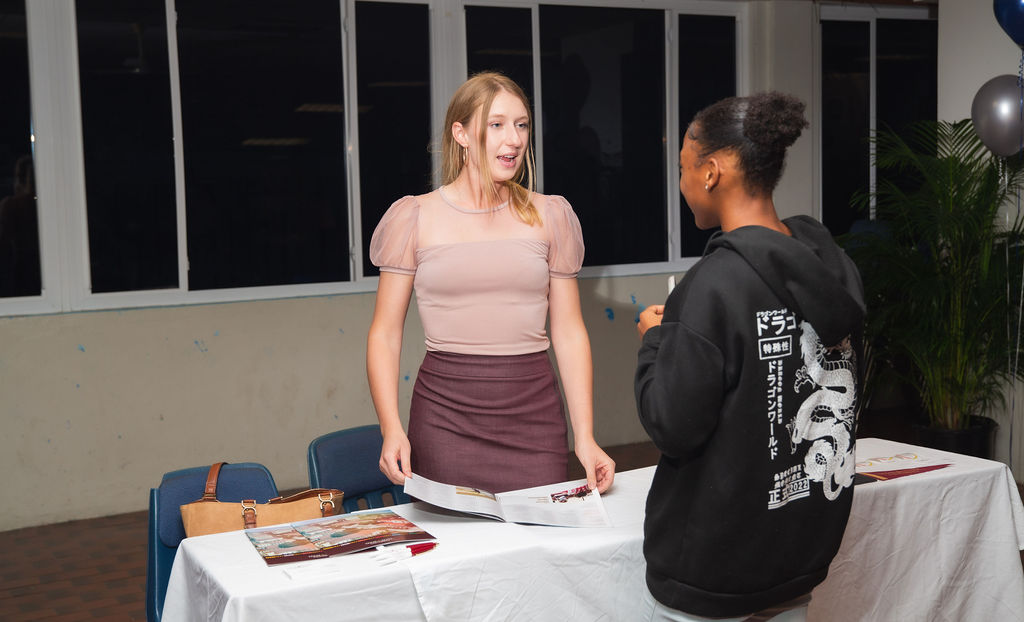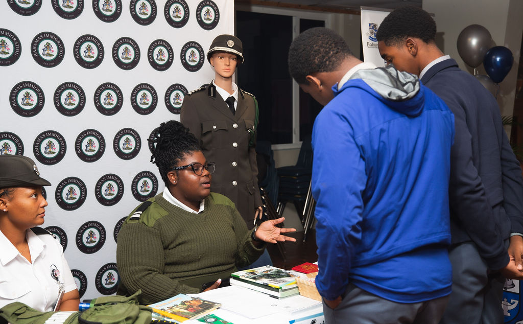 On Thursday, October 17, the Public Relations team participated in the Grad Night Career Fair at St. Anne’s School, engaging with 12th-grade students and their parents to provide valuable information about the Department of Immigration.