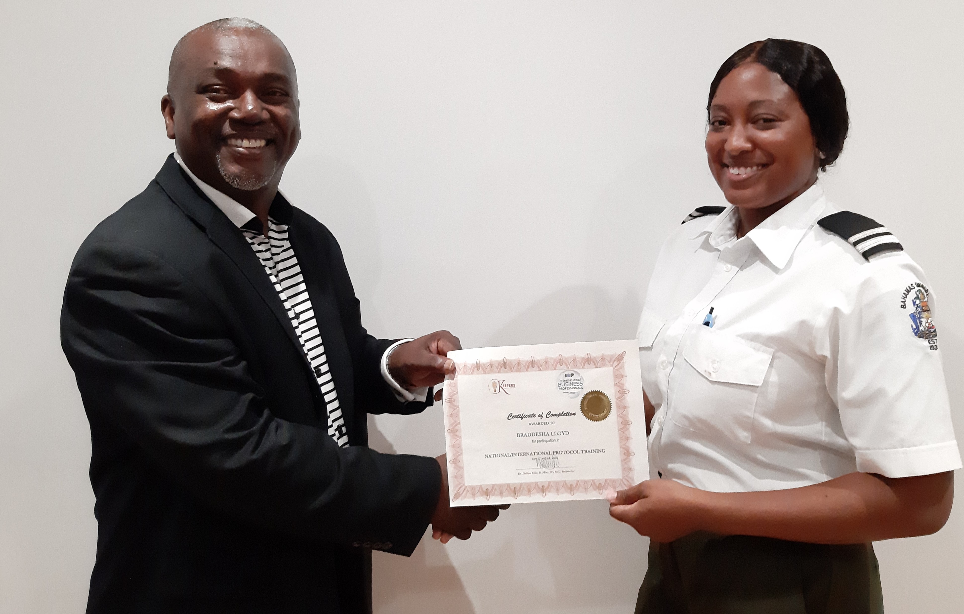 In keeping with the Department’s vision statement which promotes and supports the pursuit of higher education, and the acquisition of other job related and or self enhancement skills for all members of staff; The Bahamas Immigration Department in collaboration with facilitators of the International Business Professionals, located Caves Village Professional Center, Nassau Bahamas, provided training in Leadership Development Skills, and National and International Protocol Training & Business Diplomacy for staff of the Public Relations Unit and a number of officers currently functioning in a leadership capacity.