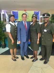 On Wednesday March 13, 2019, Superintendent Donnalee King-Burrows, Chief Immigration Officer Sean Gordon and Trainee Immigration Officer Braddesha Lloyd of the Public Relations Unit attended the opening ceremony and exhibition for the Commemoration of World Consumer Rights Day at the Mall of Marathon. They are pictured below with; Senator, The Honorable Dion A. Foulkes, Minister of Labour, Ms. Cecelia Strachan – Permanent Secretary, Ministry of Labour and Dr. William Pratt, Senior Under Secretary I, Ministry of Labour.