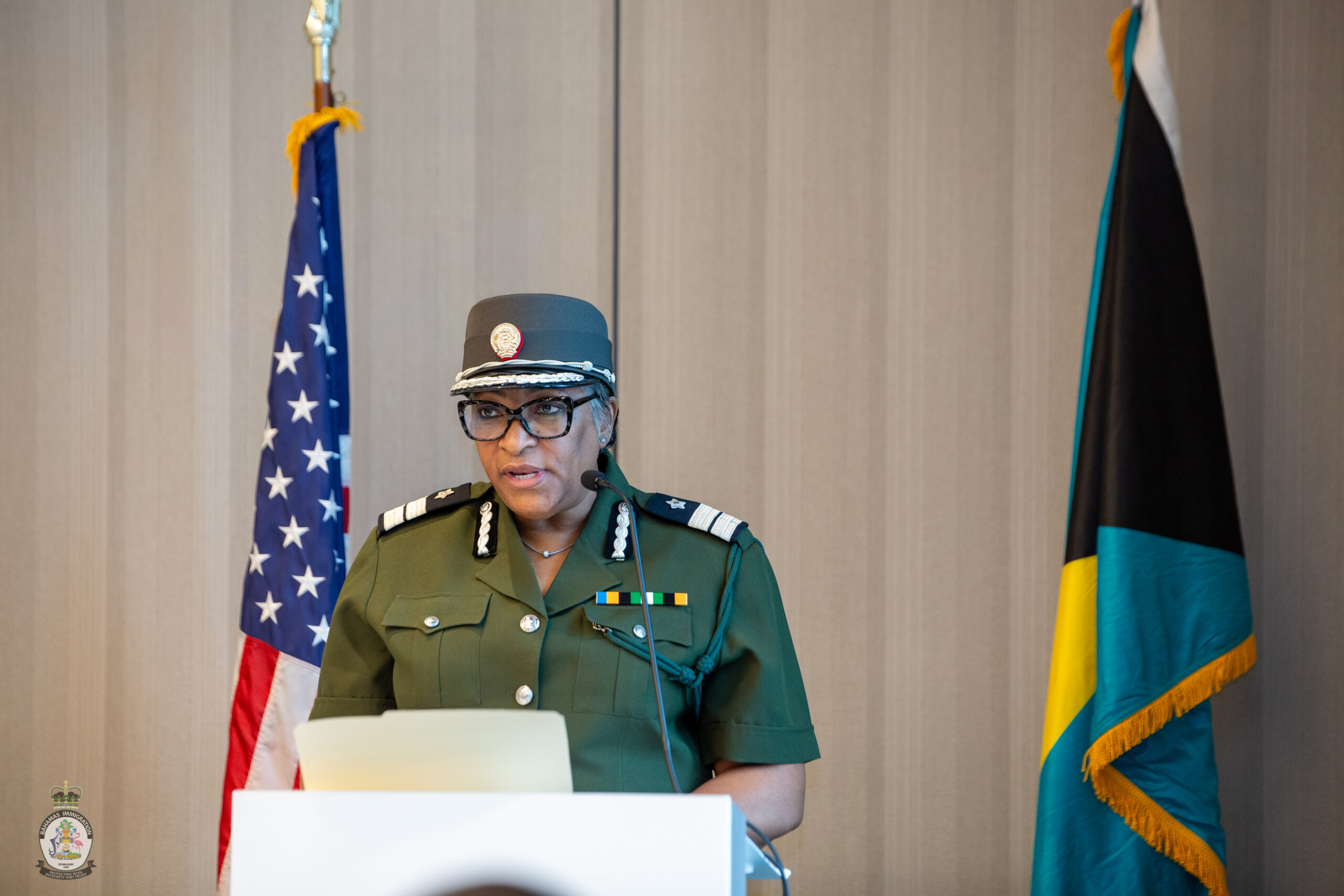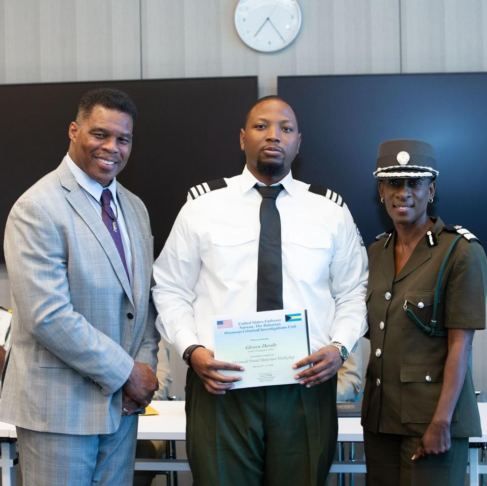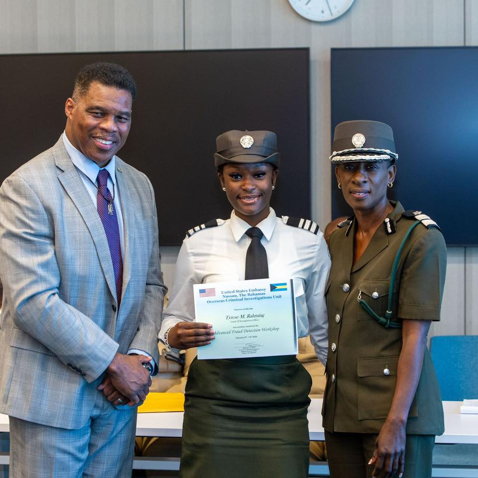 On February 13, participants successfully completed the training. Herschel Walker, United States Ambassador to the Commonwealth of The Bahamas, addressed the officers and presented certificates. Closing remarks were delivered by Acting Assistant Director Crystal McKay, who encouraged officers to apply their training with vigilance, professionalism, and integrity.