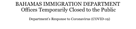 The Department of Immigration’s update to the extension service during the Emergency Order for the COVID-19 pandemic enacted by the Government of The Bahamas on 23rd March 2020; this update will remain in effect until such time as the order is lifted.