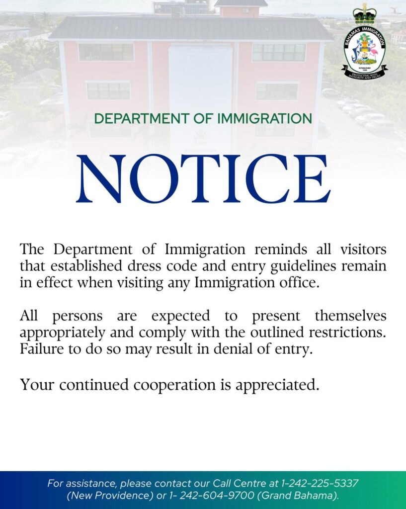 The Department of Immigration reminds all visitors that the established dress code and entry guidelines remain in effect…